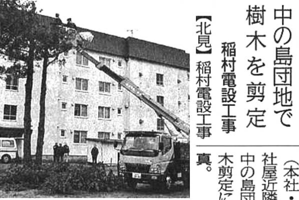 中の島団地で高所作業車を用いて樹木の剪定を行いました。